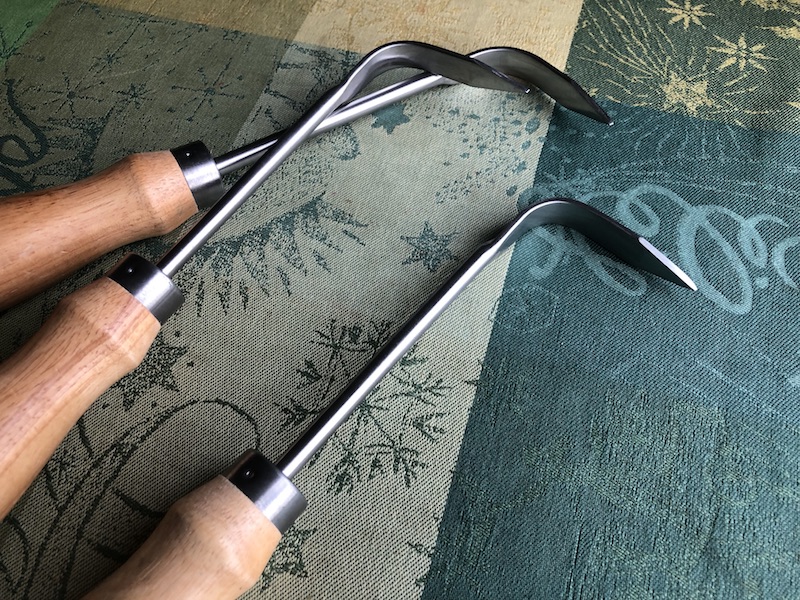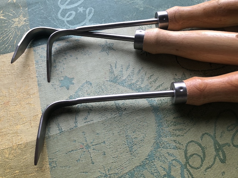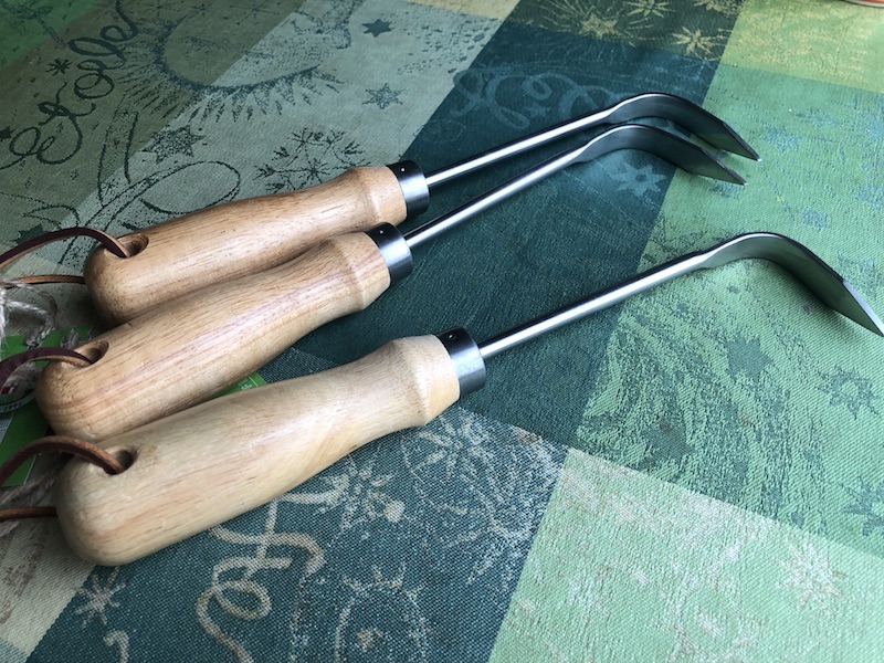Rainer und ich haben uns ja im Kieler Botanischen Garten kennengelernt, wo er im Alpinum arbeitete und ich meine Ausbildung absolvierte (anno 1988)... Dort war die Jätekralle ein unverzichtbares Gerät für jeden Gärtner und so haben wir es übernommen und schätzen dieses handliche kleine Teil heute noch von allen Gartenwerkzeugen am meisten!